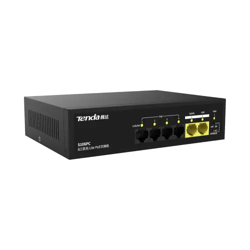 Model: S106PC 4*10/100 Base-TX Ethernet Ports(Data/Power) 2*10/100 Base-TX Ethernet Port(Data) PoE Budget: 55 Watts, Forwarding...